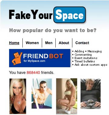 Telepolis berichtet über einen den Online-Dienst “Fake Your Space”, der bestellte Freunde vermietet für das eigene Online-Portfolio bei den sogenannten Sozialen Netzwerken von MySpace, Friendster & Co.